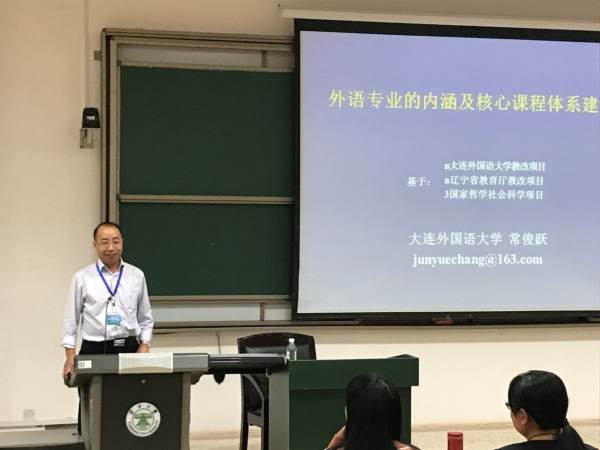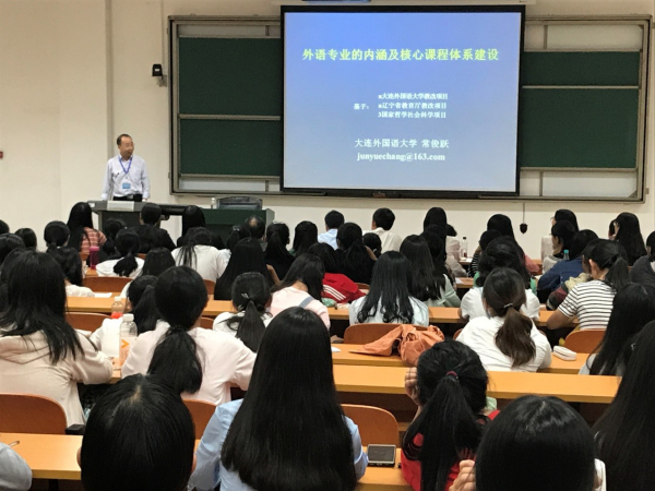 近日,大连外国语大学博士生导师常俊跃教授莅临外国语学院指导,为外国语学院师生作了一场题为“外语专业的内涵及核心课程体系建设”的讲座。