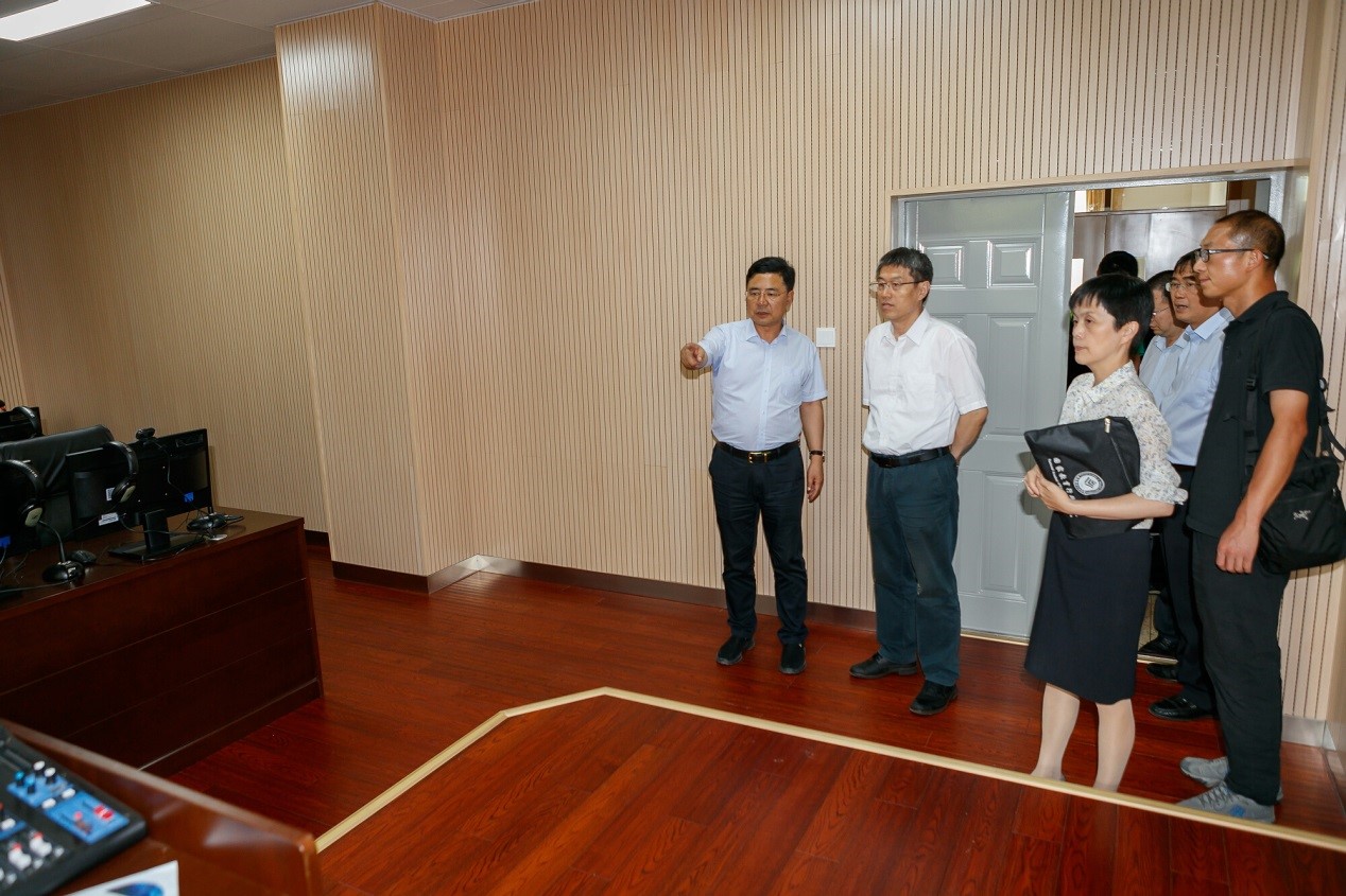 校长一行查看了外国语学院的场地,了解了相关设施和区块情况。