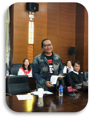 之后,缅甸作家分别进行发言。第一位发言的缅甸作家是耶湘,通过讲述他的创作灵感,现场的气氛开始变得活跃起来。他说到自己有一部作品的灵感源于缅甸用于教授儿童的字母诗的三次变革,其中一句诗与缅甸传统建筑——用于供大家歇脚休息的凉亭有关,他由此展开创作,希望借此来传递和平、平等的信念;接下来女作家飘扬瑞风趣幽默地讲述了缅甸方言与标准音之间的区别与联系,加深了我们对缅甸语的了解与学习;尼敏纽为我们介绍并朗诵了他的一首反战诗——《巴格达》,该诗讲述了战争的残酷与无辜民众的悲惨处境,发人深省,虽然题为伊拉克首都巴格达,但却不仅仅指代巴格达,它泛指了所有充满战争、冲突的地方,从文学创作者的角度呼吁全世界人民珍惜和平,反对战争;作家觉佐则讲述了更为温馨的话题——世间的五种爱,从少男少女的青涩懵懂之爱到耄耋老者的释然之爱,从母爱到家庭、国家之爱,这些题材或甜蜜温馨、或催人泪下,让我们感受到了缅甸诗歌的魅力,最后,作家奈温敏通过讲述缅甸传统习俗剃度出家引出小男生出家前的爱情故事方面的创作体会。