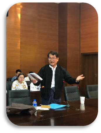 参观结束后,外国语学院缅甸语系及缅甸研究院的师生与缅甸作家举行了座谈。本次座谈会由寸雪涛教授主持,缅甸研究院孔鹏副研究员与外国语学院缅甸语系副系主任庞俊彩分别介绍了云南大学缅甸问题研究、缅甸语专业学生培养等相关情况。随后,缅甸作家团团长奈温敏介绍了到访的各位作家及其作品。