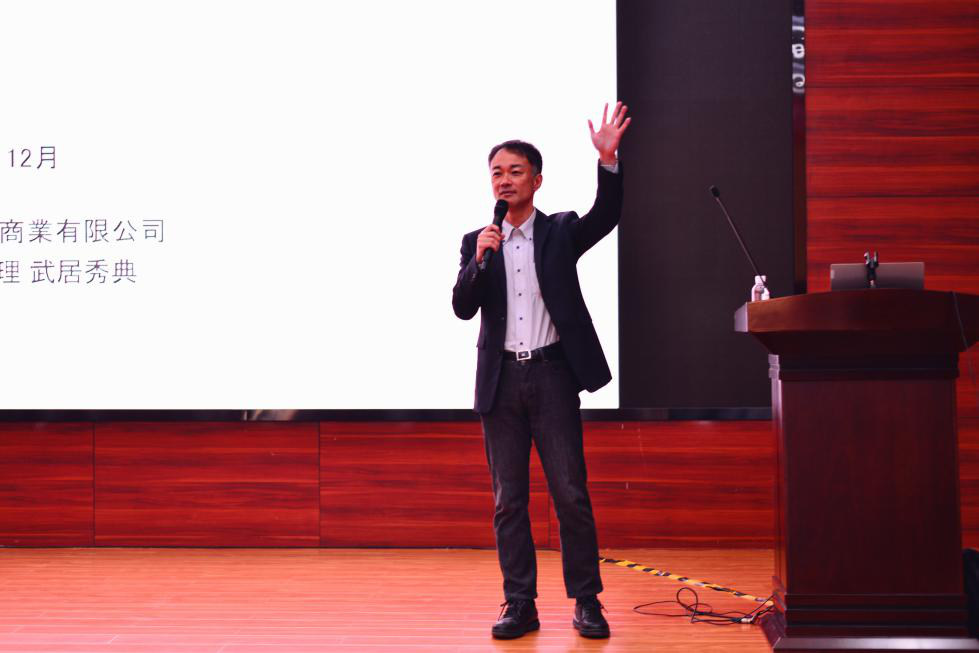 20191212日,外国语学院日语系有幸邀请到三菱商事(中国)商业有限公司董事长兼总经理武居秀典先生,以及北京外国语大学日本学研究中心张龙妹教授到访我校。并于当日上午9点至12点,在外国语学院一楼报告厅为日语系师生带来了一场丰富而精彩的讲座。武居董事长先从“综合商社”这一日本文化视角出发,向大家生动而详细地介绍了三菱商事的发展历史、企业文化,以及与北外日研中心的深厚渊源;随后张教授以《源氏物语》为主题,围绕着文学独创性这一核心视角,为日语系师生介绍了日本古典文学经典著作的独特魅力。在场的研究生与本科生积极参与提问互动,气氛轻松愉悦。最后,远道而来的各位嘉宾与日语系师生在外国语学院办公楼前亲切地合影留念。
