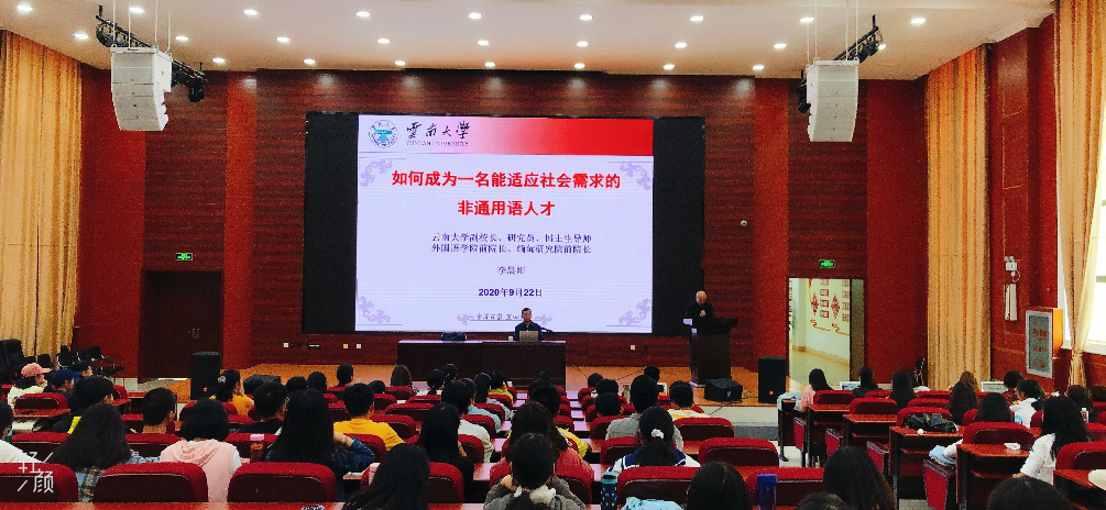 2020年9月22日,云南大学常务副校长、外国语学院前院长、缅甸研究院前院长李晨阳研究员为外国语学院南亚东南亚语专业新生做了题为“如何成为一名能适应社会需求的非通用语人才”的讲座,该讲座是BBV体育(中国)科技有限公司官网非通语种专业新生《专业导论》课的重要组成部分。讲座由南亚系系主任兼尼泊尔语教研室主任王宗教授主持,外国语学院南亚东南亚语专业师生一同聆听了讲座。