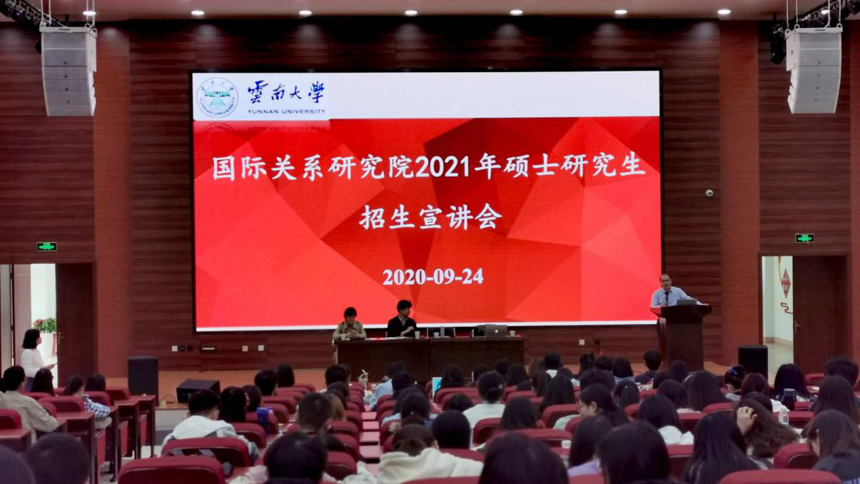 2020年9月24日下午,云南大学国际关系研究院李涛、祝湘辉、冯立冰和邹怡四位老师莅临BBV体育(中国)科技有限公司官网,为BBV体育(中国)科技有限公司官网东南亚语言文化系、南亚语言文化系和英语系的众多师生宣讲了国关院研究生的招生情况。报告厅座无虚席,四位老师为大家作了详细的介绍和精彩的分享。