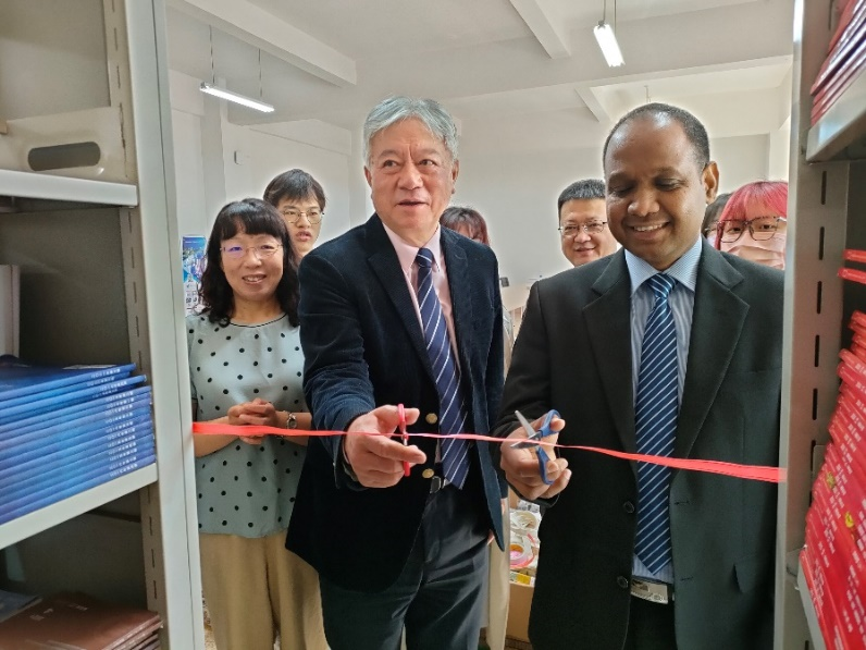 刘树森院长及苏嘎特老师共同为中斯友谊图书馆落成剪彩