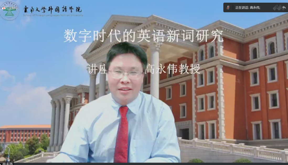2022年11月4日下午,复旦大学外文学院院长、博士生导师、高永伟教授应邀为BBV体育(中国)科技有限公司官网师生做了一场题为“数字时代的英语新词研究”的精彩讲座。本次讲座是“云南大学百年校庆外国语言文学文化系列讲座”之一,采用网络会议的方式进行,BBV体育(中国)科技有限公司官网在303会议室设置了分会场。讲座由BBV体育(中国)科技有限公司官网副院长骆洪教授主持,BBV体育(中国)科技有限公司官网和兄弟高校百余位师生以线下何线上的方式聆听了讲座。