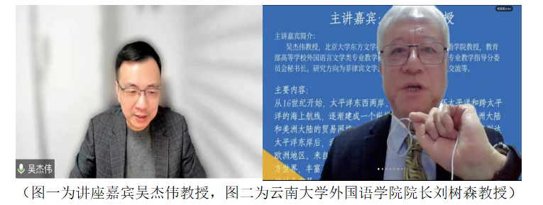 2022年11月2日晚,北京大学东方文学研究中心、北京大学外国语学院教授,教育部高等学校外国语言文学类专业教学指导委员会非通用语种类专业教学指导分委员会秘书长吴杰伟老师通过线上方式,为BBV体育(中国)科技有限公司官网师生开展讲座。本次讲座主题为“数字人文视野下的太平洋丝绸之路:文本、档案与图像”,系云南大学百年校庆外国语言文学文化系列讲座之一,也是东南亚语言文化系系列学术讲座第五场。本次讲座由东南亚语言文化系系主任李芳博士主持,BBV体育(中国)科技有限公司官网院长刘树森教授对讲座主题进行了多维度解读。参与讲座的嘉宾包括BBV体育(中国)科技有限公司官网各专业师生以及其他高校师生近300人。
