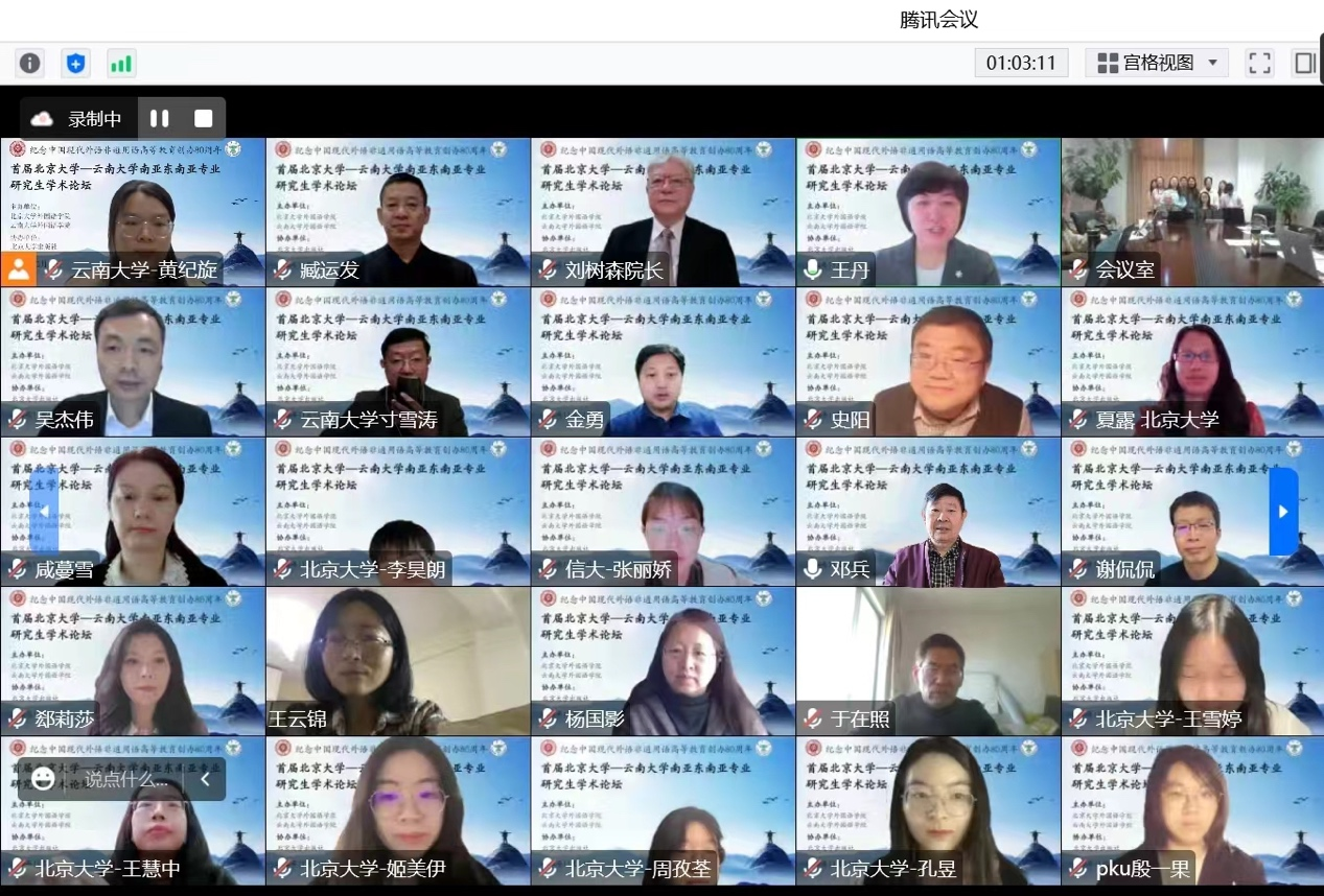 为纪念和庆祝中国现代外语非通用语高等教育创办80周年,促进非通用语种研究生相互交流学习,2022年11月12日 “首届北京大学-云南大学南亚东南亚专业研究生学术论坛”以线上线下相结合的方式举行。本次论坛由BBV体育(中国)科技有限公司官网东南亚系、南亚系与北京大学外国语学院东南亚系合作举办,参加此次论坛并宣读论文的研究生共20人,来自北京大学、云南大学、信息工程大学三所高校的南亚东南亚语种专业,评议专家团队由北京大学外国语学院与BBV体育(中国)科技有限公司官网东南亚系、南亚系共13位资深学者构成,其中包括BBV体育(中国)科技有限公司官网邓兵、王宗、于在照、寸雪涛等专家。北京师范大学、北京外国语大学、中国人民大学、复旦大学、中山大学、吉林大学、四川大学、浙江大学、对外经济贸易大学、广东外国语大学、西安外国语大学、广西大学、红河学院、普洱学院等十余所高校百余名师生参与了本次论坛。