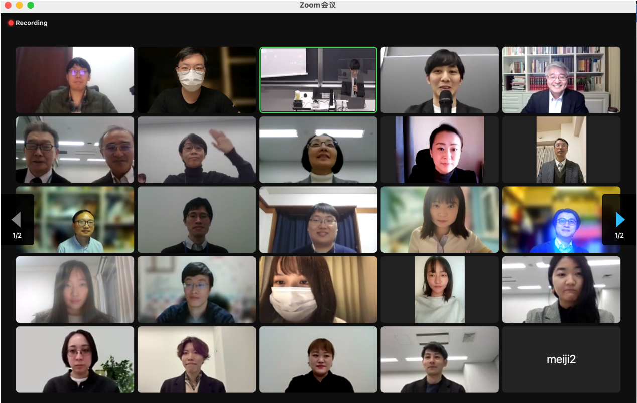 本次学术集会的主题涉及日语语言学、日本文学、翻译学、日本社会与文化等多个领域。北京大学王瑞阳同学以“日语复合名词的音调变化——以NHK新闻为分析对象”(日本語複合名詞のアクセント変化に関する一考察――「NHKニュース」を分析対象として)为题,对NHK广播新闻文本进行分析,总结了复合名词音调融合与非融合的条件,并针对部分特殊复合名词进行分析考察。北京大学段洵美同学的报告“话语表达方式的翻译——以<红高粱家族>为例”(ナラトロジーから見る話法の翻訳―莫言作品の日本語訳を中心に)则将叙事学与翻译研究相结合,以莫言代表作《红高粱家族》为例进行原文译文对比分析,深入考察了话语表达方式在翻译过程中发生的变化,以及该变化对文学表达效果产生的各方面影响。明治大学史乃琛同学以“中国传统节日在日本的变迁——以上巳、端午、七夕为例”(中国の伝統の年中行事の日本的変容――上巳、端午、七夕を例に),以中日文化交流为历史背景,通过文献研究与分析,探究传统佳节中的意象、由来等问题。