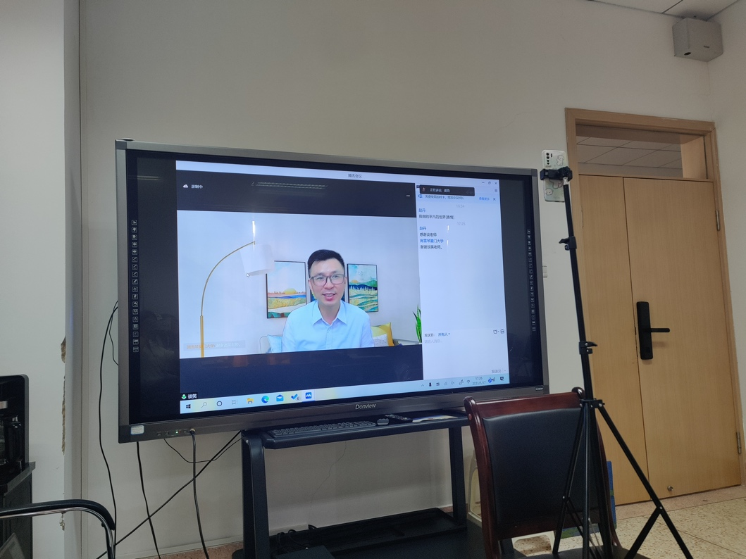 (谈笑教授在讲学中)