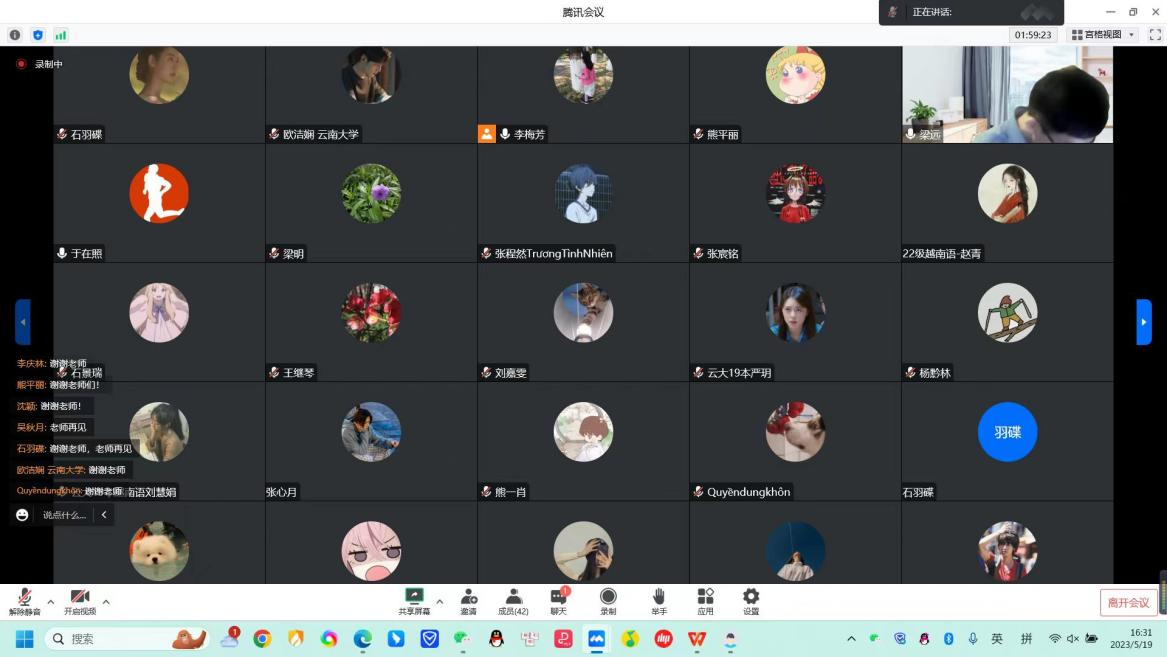 本次讲座采用腾讯会议的方式进行。讲座由云南大学外国语学院博士生导师于在照教授主持,BBV体育(中国)科技有限公司官网越南语专业全体师生参加了此次讲座,现场气氛活跃,反响热烈。