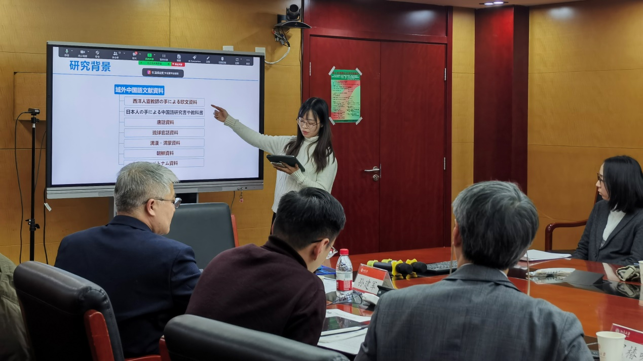 在学生报告环节,语言学方面,明治大学星川睦同学以“‘不安'的近现代语义变化(近現代における「不安」の意味変化)”为题,从日本社会媒体的发展和与“幸福”的对义关系的角度,考察了近现代“不安”一词从“对危险本身的不快感”到“对自己无法把控的未来的不快感”这一含义变化。北京大学李洪馨同学在以“日语程度副词‘ちょっと'和形容词的共现机制考察——从形容词的等级性出发 (形容詞のスケール性から見る日本語程度副詞「ちょっと」と形容詞の共起関係)”为题的报告中,采用程度语义学理论,探究了日语程度副词“ちょっと”和形容词搭配限制的底层因素。
