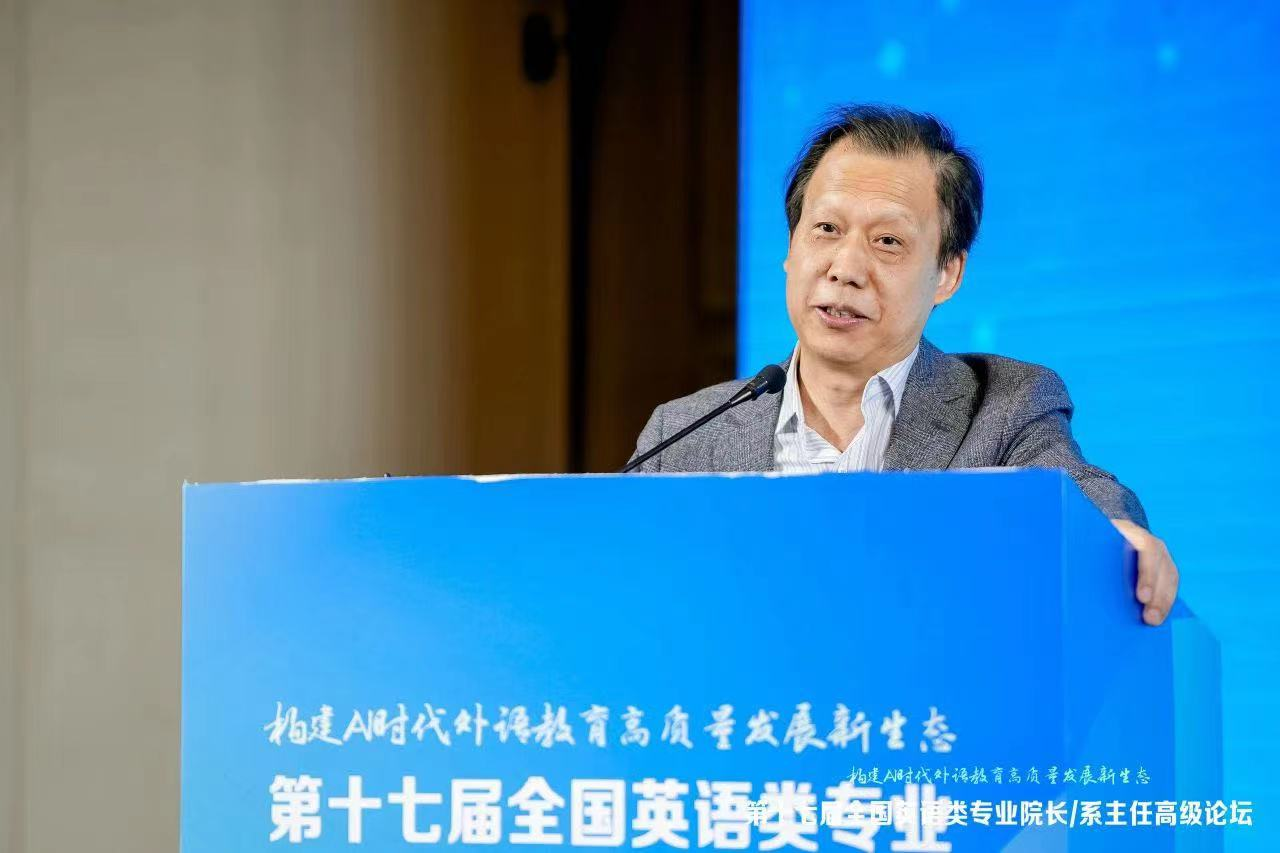 开幕式上,国务院学位委员会外国文学学科评议组成员、召集人,上海外国语大学副校长查明建教授代表上海外国语大学向远道而来参会的各位来宾表示了热烈的欢迎。他相信,以AI赋能英语专业,英语专业将焕发新光彩。教育部高等学校外国语言文学专业教学指导委员会主任委员、北京外国语大学副校长孙有中教授随后发言。他强调,“AI+教育”对于推动教育数字化转型至关重要,他鼓励外语界同仁共同努力,加快建设高质量的外语教育体系,让AI时代的外语专业大有可为。