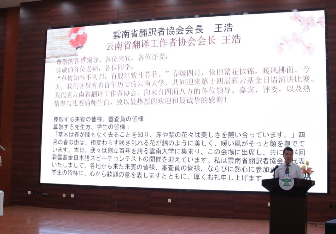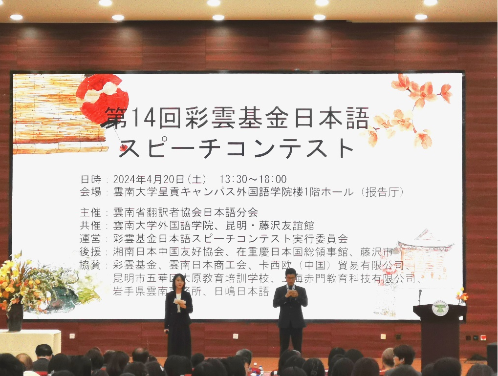 第十四届彩云基金日语演讲比赛于2024年4月20日在BBV体育(中国)科技有限公司官网隆重举行。本届演讲比赛由云南省翻译工作者协会日语分会主办,昆明·藤泽友谊馆、BBV体育(中国)科技有限公司官网协办,由中方评委和日方评委共同组成比赛评委会。共有16名来自云南大学、云南师范大学、云南民族大学等开设日语专业的省内高校的选手参赛。