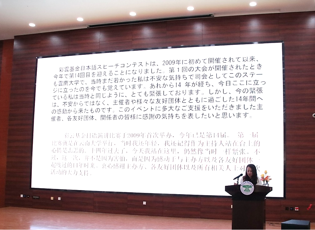 比赛当日恰逢云南大学建校101周年,作为东道主的本校师生充分展现了“云大”人独有的人文情怀和精神风貌。本次活动为促进中日友好交流以及云南省各高校日语专业间的交流发挥了积极的作用。