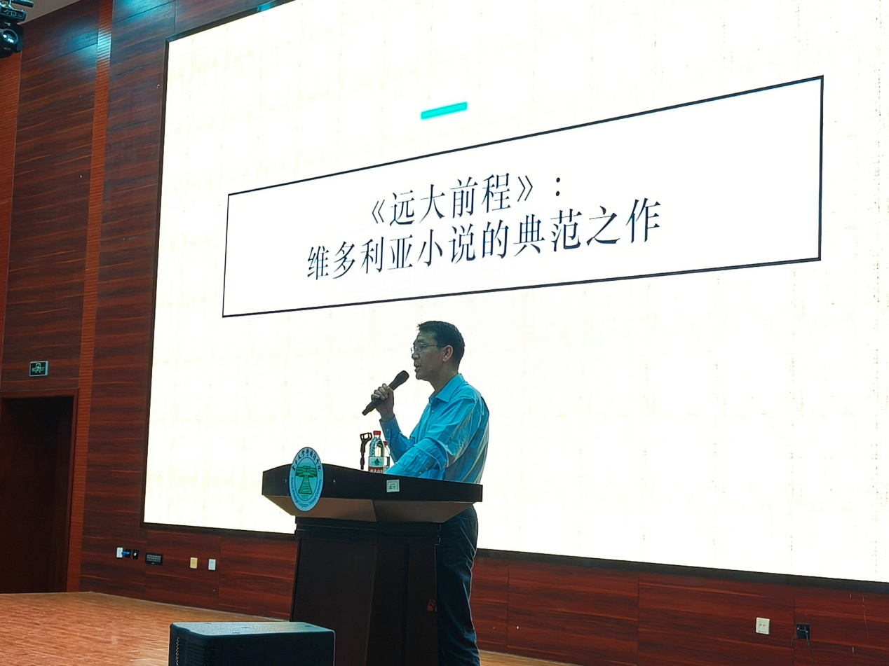 2024年4月19日晚,北京大学外国语学院英语系主任纳海老师应邀为BBV体育(中国)科技有限公司官网师生做了一场精彩的学术讲座,题目为“《远大前程》:维多利亚小说的典范之作”。本次讲座在外国语学院101报告厅举行,由BBV体育(中国)科技有限公司官网英语系主任徐莎老师主持,各专业本科和研究生同学参加。