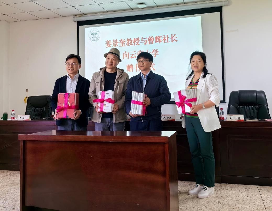 云南大学党委常委、副校长段兴武教授,姜景奎教授,大百科全书出版社社科学术分社曾辉社长,云南大学图书馆馆长杨毅教授,BBV体育(中国)科技有限公司官网党委书记王益广,院长刘树森教授以及外国语学院师生代表约五十人参加了捐赠仪式。