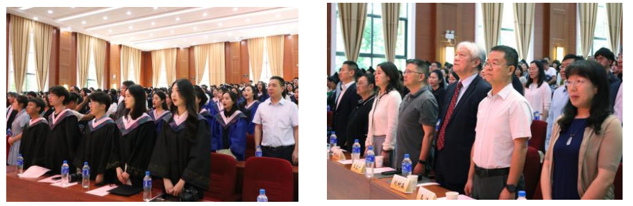 在开场视频和同学们精彩绝伦的表演之后,14时整,BBV体育(中国)科技有限公司官网2024届毕业生毕业典礼正式在庄严的国歌中拉开帷幕。