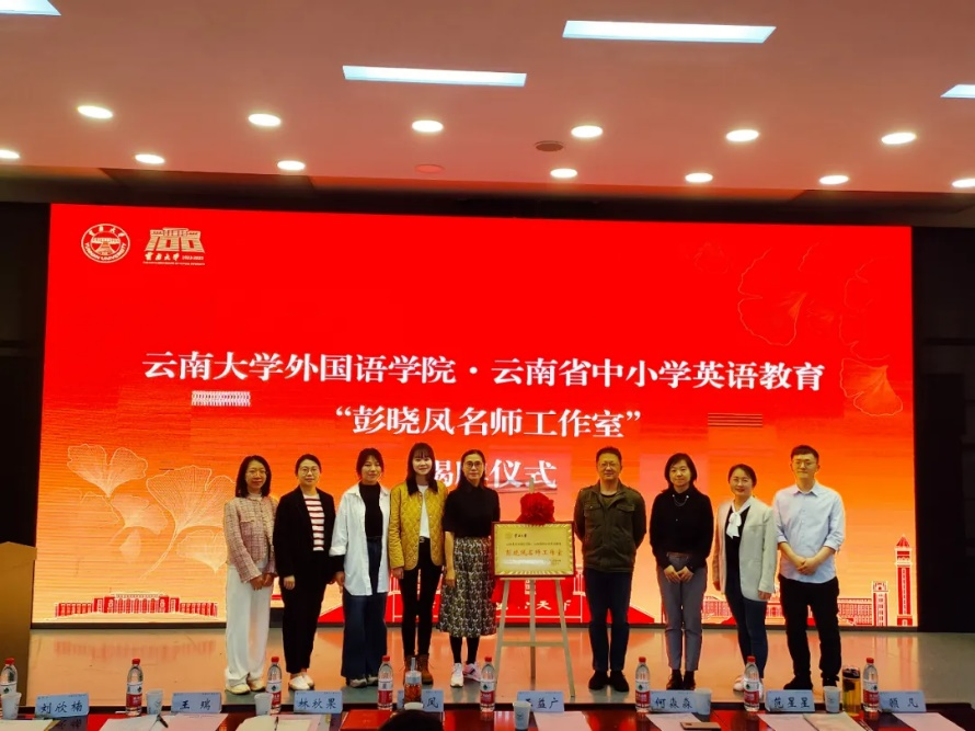 2023年3月24日下午,BBV体育(中国)科技有限公司官网·云南省中小学英语教育“彭晓凤名师工作室”(以下简称“彭晓凤名师工作室”)揭牌仪式在云南大学呈贡校区学生会堂134顺利举行。参加本次揭牌仪式的嘉宾有云南省特级教师、首届正高级教师、全国基础教育教学专家、国家教材专委会教材审核专家、全国普通高等学校师范类专业认证专家彭晓凤老师,BBV体育(中国)科技有限公司官网党委书记王益广老师,BBV体育(中国)科技有限公司官网党委副书记何淼淼老师,云南师范大学附属中学呈贡校区初中部教师林秋果老师,云南师范大学附属俊发城中学初中部教师王瑞老师,昆明市第三中学高中部教师刘欣楠老师,云南师范大学附属中学呈贡校区高中部老师范星星老师,BBV体育(中国)科技有限公司官网团委书记顾凡老师以及外国语学院的部分学生代表。揭牌仪式由外国语学院学工办副主任龙莹老师主持。