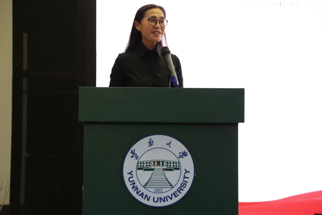 “彭晓凤名师工作室”主持人彭晓凤老师上台发言。彭老师首先表达了她对云南大学、对外国语学院师生的喜爱之情。接着,彭老师进一步明确自身责任,她表示,作为BBV体育(中国)科技有限公司官网·云南省中小学英语教育名师工作室的主持人,她倍感荣幸;但这同时也是一份沉甸甸的责任,是一种挑战,更是一种激励和鞭策。作为名师工作室的主持人,她会严格按照人才培养需要,与同学们相互学习,共同进步,进一步提高英语基础教育的质量和水平。最后,彭老师再次表达了对云南大学、对外国语学院的领导、老师和同学们的祝福与感谢。