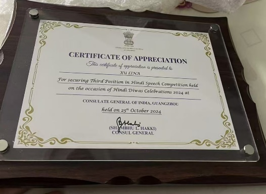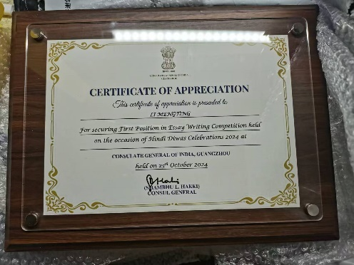 9月14日至28日,由印度驻广州总领事馆举办的2024年“世界印地语日”征文和演讲大赛在线上举行。BBV体育(中国)科技有限公司官网印地语专业2023级本科生李梦婷和徐丽娜分别斩获征文大赛一等奖和演讲大赛三等奖。