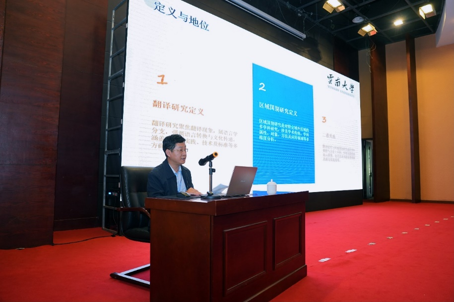 在教师教育教学能力提升研讨环节,寸雪涛教授作了题为《翻译研究与区域国别研究的交叉视野》的主旨报告,从理论、实践与全球化时代的启示等方面分析了翻译研究与区域国别研究的交叉互动,指出两者在国际传播与企业出海等方面的交叉空间与积极意义,并呼吁广大非通用语教师利用外语优势,推动翻译研究从“文本分析”走向“生态实践”,为区域国别研究注入新的活力,以此服务国家战略。