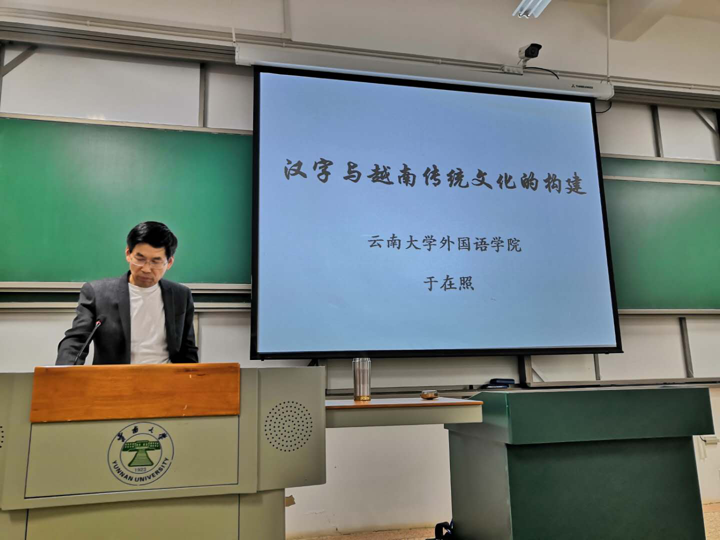 于在照教授从三个方面向在场的师生梳理、分析了汉字对越南传统文化构建的影响和贡献。1、汉字在安南的传播推动了儒学、佛教和道教在安南的传播,为越南传统文化的孕育和奠基做出了贡献。2、10世纪中叶至14世纪末,汉字在越南的推广推动着儒释道为核心的中国传统文化在越南的渗透和传播,对越南传统文化的形成发挥了巨大的历史作用。3、15世纪初至19世纪中叶,汉字承载的儒释道文化已经完全融入越南本土文化,成为越南传统文化不可分割的重要组成部分。